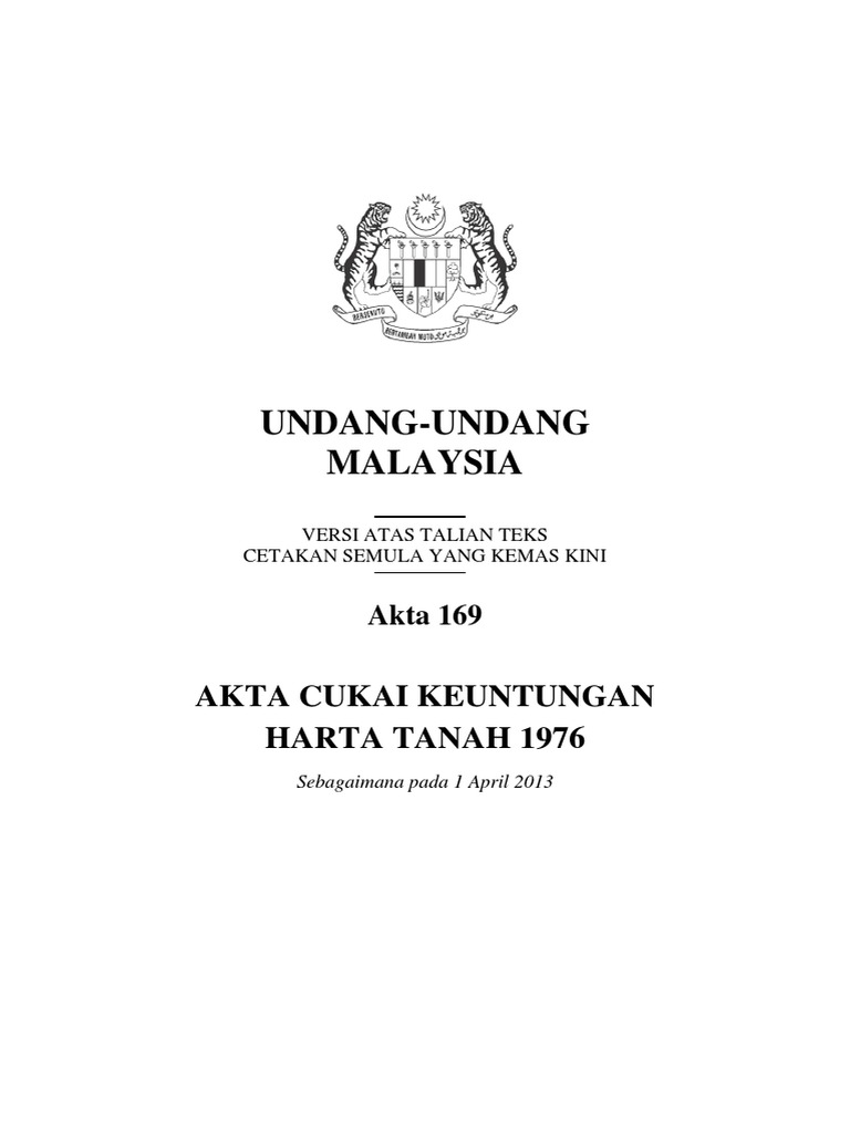 Akta 169 Akta Cukai Keuntungan Harta Tanah 1976 Pdf