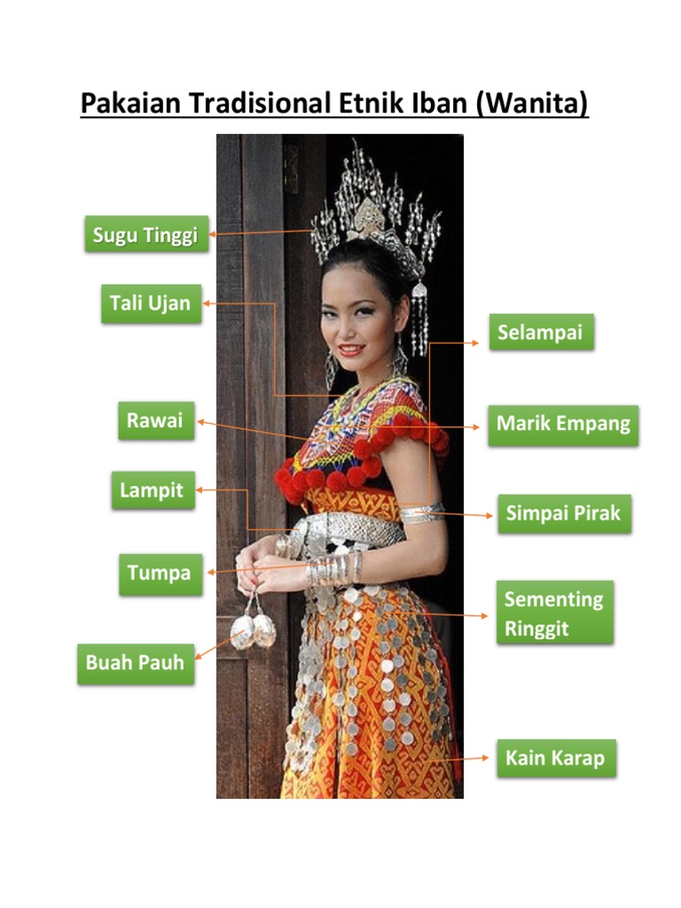 Pakaian Tradisional Suku Kaum Iban Sarawak Diagrama Etiquetado
