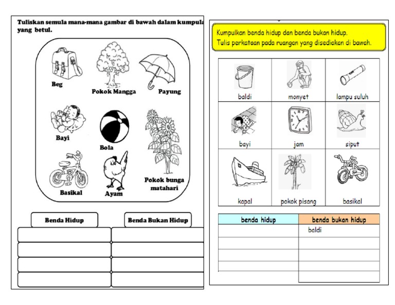 Ficha De Benda Hidup Dan Benda Bukan Hidup