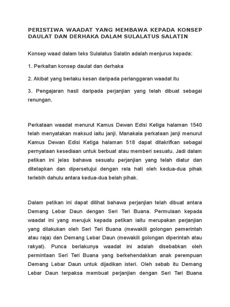 Shellabear 199220 Maksud waadat antara Demang Lebar Daun dengan Sang Sapurba ialah rakyat perlu memberikan taat setia sepenuhnya kepada Raja. Hari ini kamu bersama cikgu Yuyu. 2016 SEJARAH TAHUN 5 PEPERIKSAAN SETENGAH TAHUNdocx.