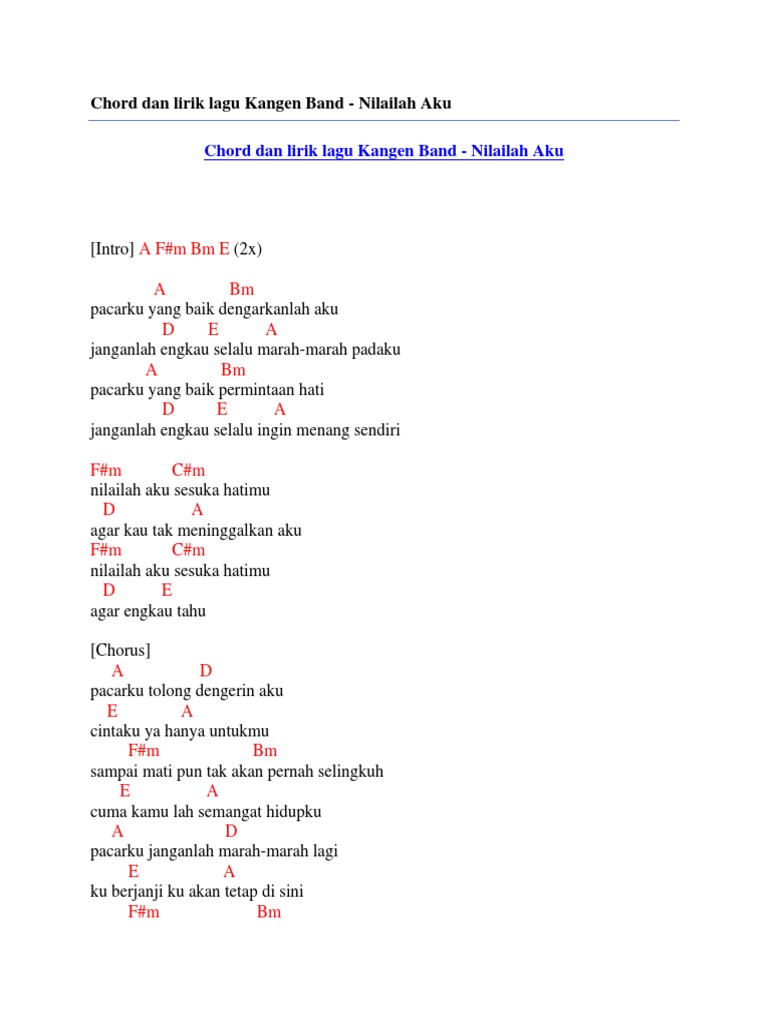 Chord Dan Lirik Lagu Kangen Band Nilailah Aku