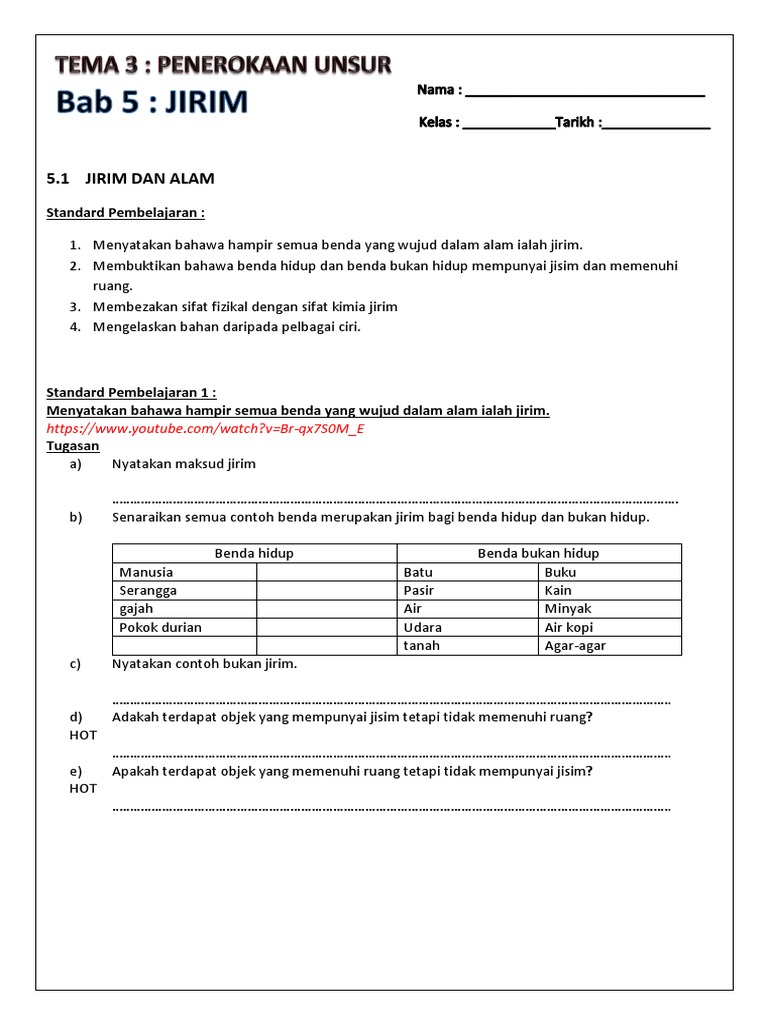 Segala-galanya sama ada benda yang hidup atau bukan hidup yang mempunyai jisim mass dan mempunyai memenuhi ruang occupies space dipanggil jirim matter. Sains t1 bab 5 DRAFT. Menyatakan bahawa hampir semua benda yang wujud dalam alam ialah jirim.