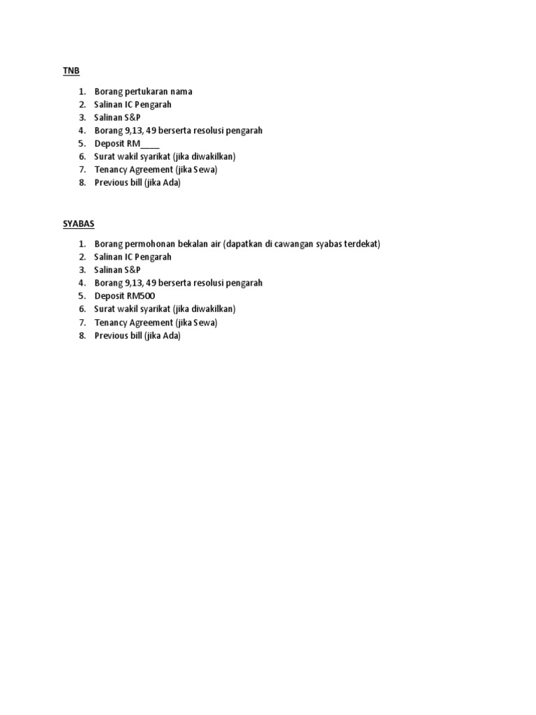 Tnb Syabas Permohonan Dan Pertukaran Nama