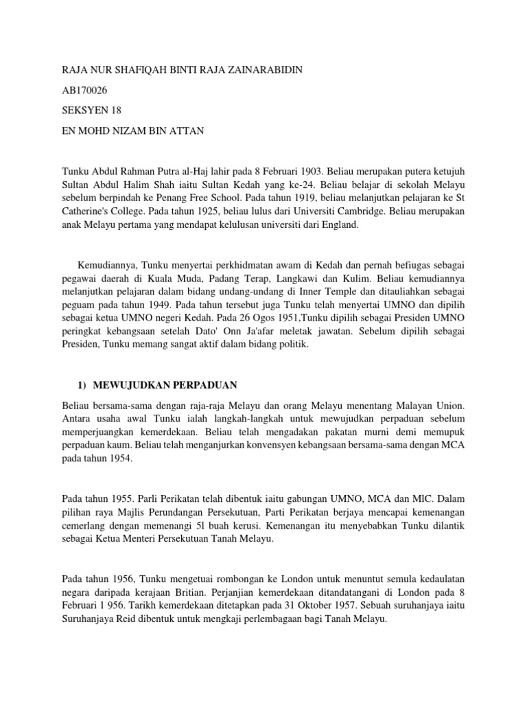Konklusinya Tunku Abdul Rahman banyak mencurahkan sumbangannya kepada negara. Sumbangan Tunku Abdul Docx Sumbangan Tunku Abdul Rahman Sepanjang Penglibatan Tunku Abdul Rahman Dalam Bidang Politik Beliau Banyak Memberi Sumbangan Course Hero. Akhirnya tunku berjaya bergelar seorang peguam selepas 18 bulan.