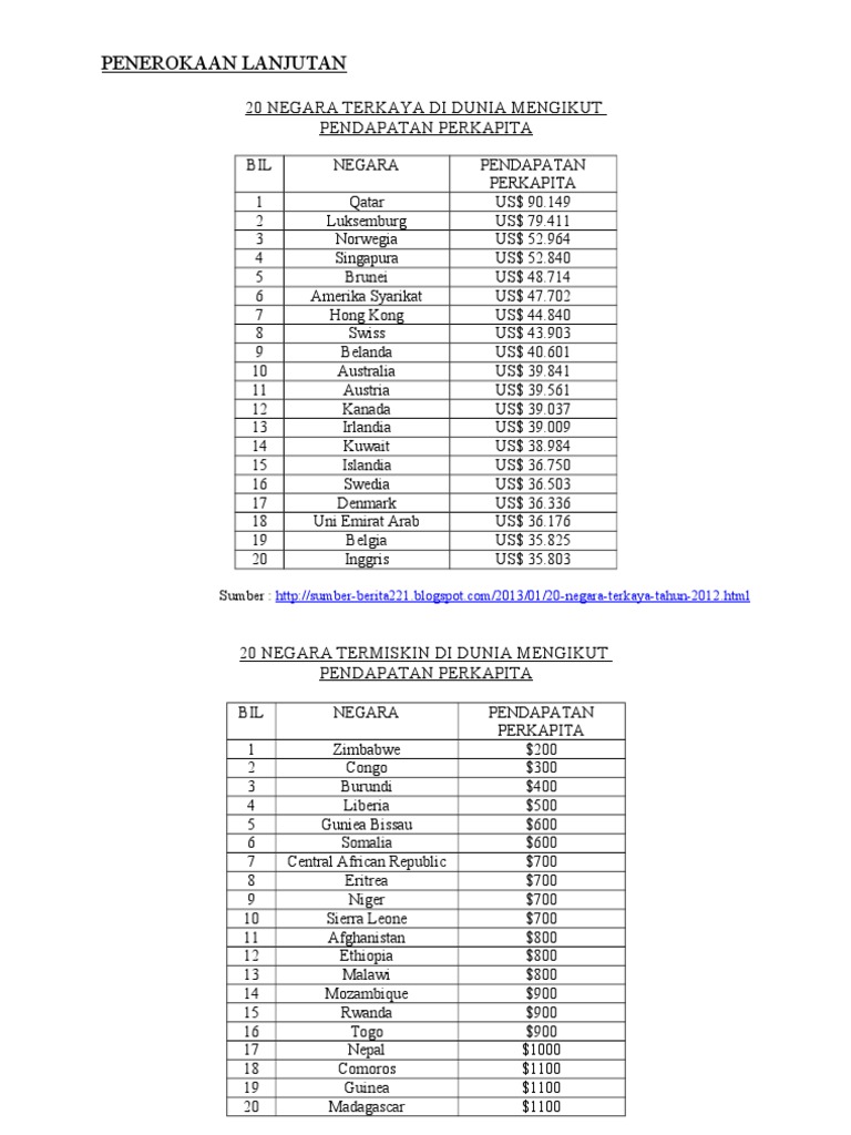 Negaraterkayadidunia negarapalingmakmur negarapalingkaya qatarAda Beberapa negara yang sangat kaya seperti Singapura Swiss dan Irlandia mendapatkan k. Dua diantaranya merupakan warga negara Indonesia. Beberapa negara kecil tetapi sangat kaya seperti Luksemburg Singapura Swiss dan Irlandia mendapatkan keuntungan karena memiliki sektor keuangan dan rezim pajak yang canggih yang membantu menarik investasi asing dan pekerja profesional.