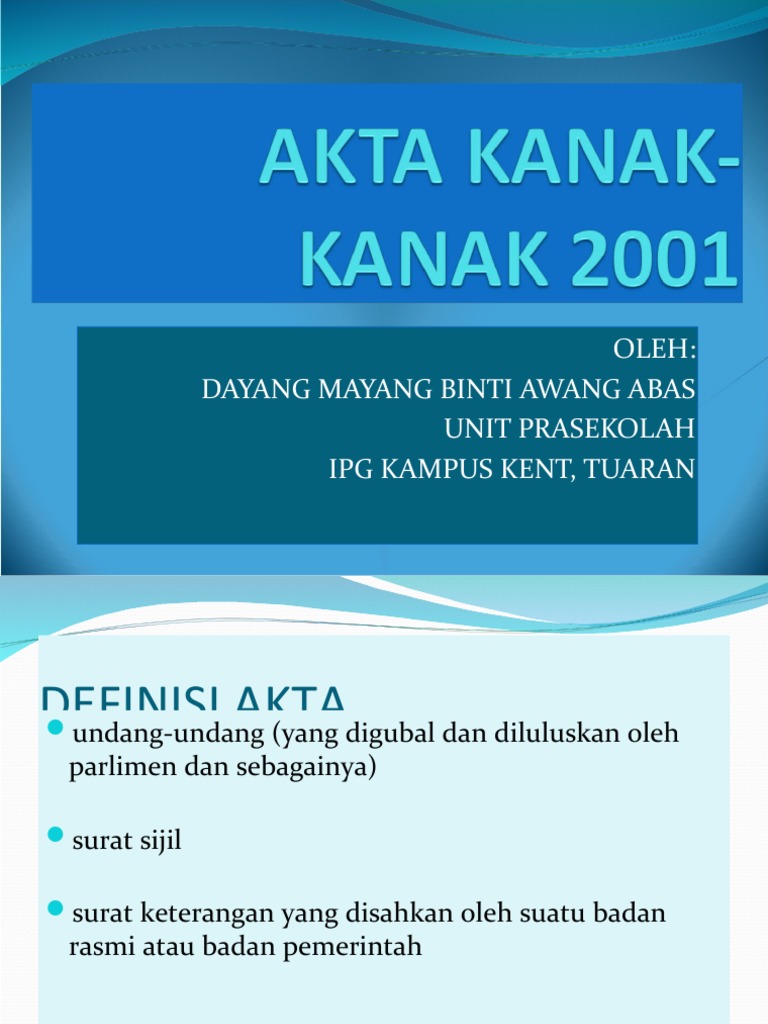 Terhadap Undang-undang Keluarga Akta Kanak-Kanak 2001 Akta 611 selepas ini dirujuk sebagai Akta 611 hanya mula berkuatkuasa pada 1 Ogos 2002 walaupun ia telah diluluskan pada tahun 2001. Akta untuk menyatukan dan meminda undang-undang yang berhubungan dengan pemeliharaan pelindungan dan pemulihan kanak-kanak dan untuk mengadakan peruntukan bagi perkaraperkara yang berkaitan dan bersampingan dengannya. The copyright of the image is owned by the owner this website only displays a few snippets of several keywords that are put together in a post summary.