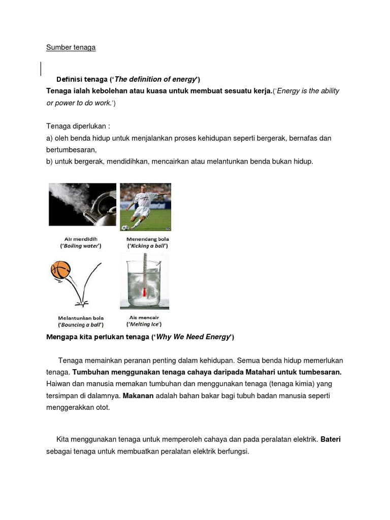 Daya Tenaga Sains Tahun 5 Tenaga Dan Sumber Tenaga