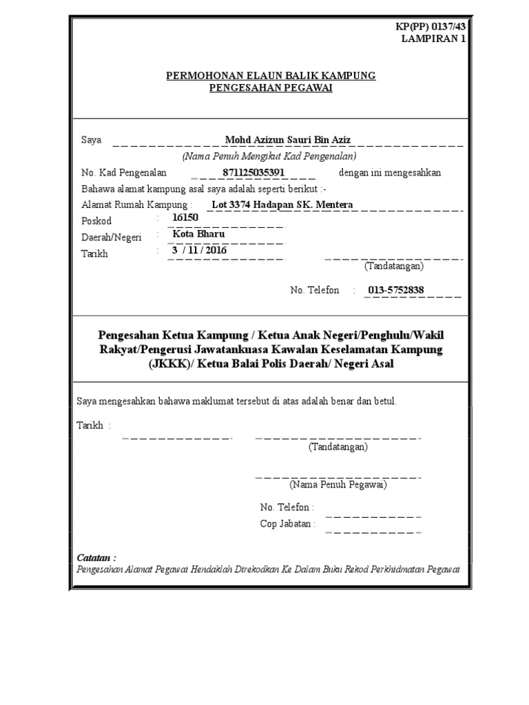 Borang Permohonan Balik Kampung Lampiran I Iii Pdf Pdf Document. Surat Rasmi Permohonan Balik Kampung Frasmi. SIJIL SATU PERTIGA DARIPADA GAJI POKOK.