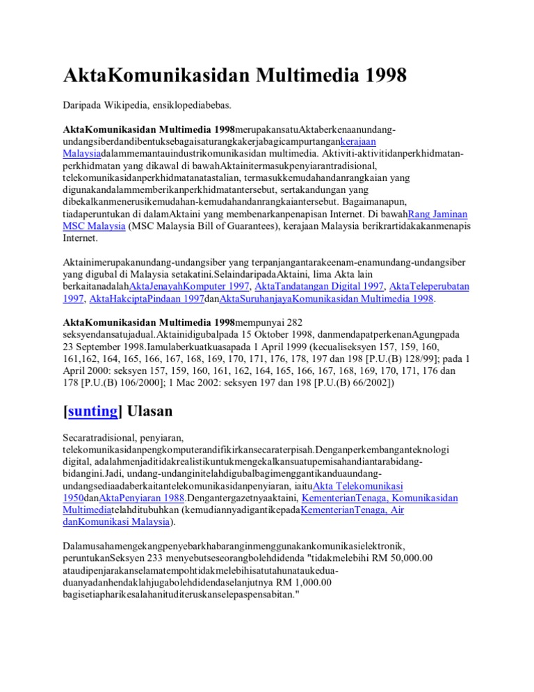 Akta Komunikasi Dan Multimedia 1998 Wikipedia