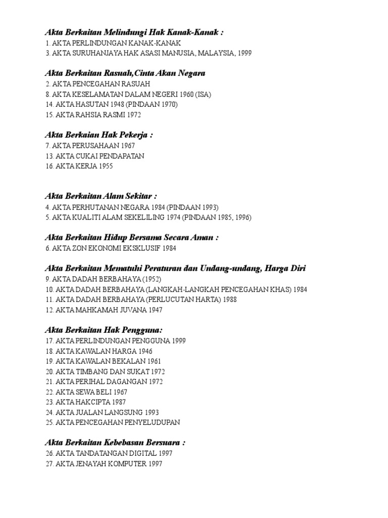 Mengatasi masalah ancaman siber seperti Akta Komunikasi dan Multimedia 1998 Akta Jenayah Komputer 1997 Akta Perdagangan Elektronik 2006 Akta Perlindungan Data Peribadi 2010 dan Akta Perlindungan Pengguna 1999 Pindaan 2010. Download akta perlindungan penguna PDF for free. Akta Undang-undang Sivil 1956 Akta 67 4.
