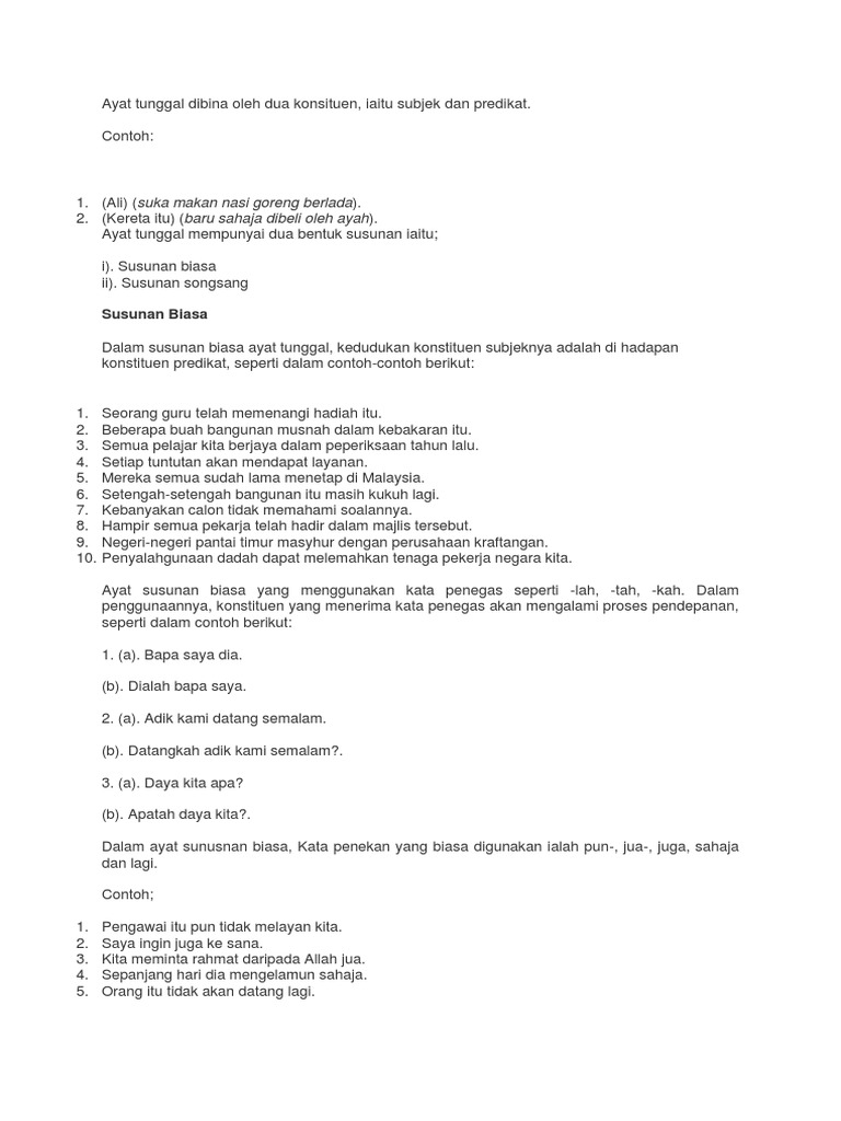 RPT BAHASA IBAN TAHUN 6 simple Diunggah oleh. Bahasa Melayu BM Gradelevel. Ayat tunggal ialah ayat yang mengandungi satu subjek dan satu predikat.