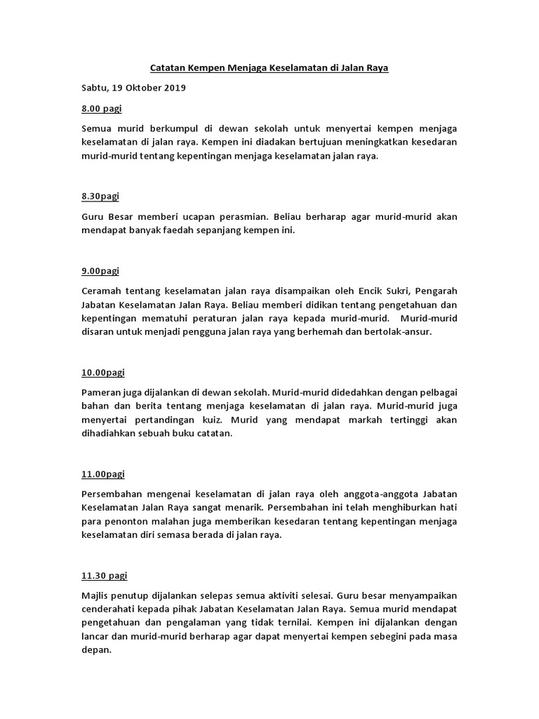 Catatan Kempen Menjaga Keselamatan Di Jalan Raya