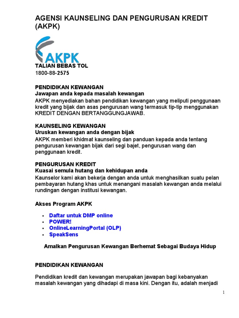 Perkhidmat Agensi Kaunseling Dan Pengurusan Kredit Akpk Facebook