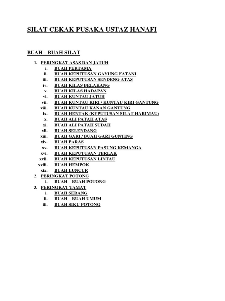 Jomsilatmelayu Senarai Nama Buah Silat Cekak Pusaka Ustaz Hanafi