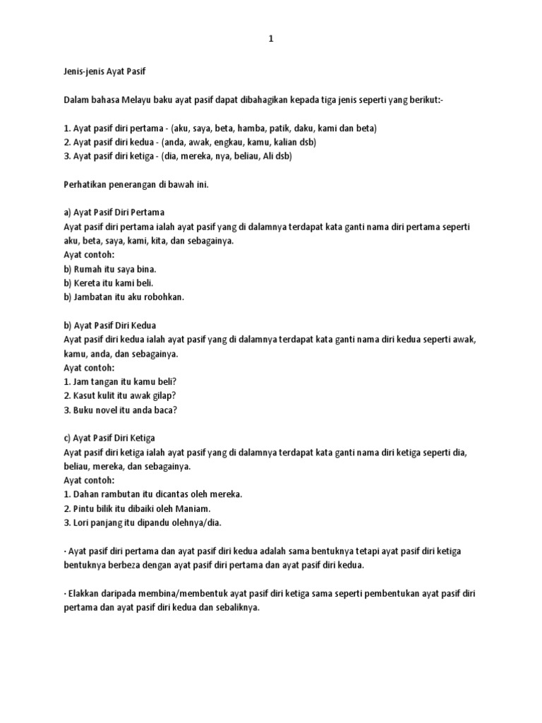 Kebetulan hikayat-hikayat Melayu dan karya sastera Melayu lama lebih banyak menggunakan ayat pasif. Ii Ayat pasif dengan kata ganti nama diri pertama dan kata ganti nama diri kedua. Pembahagian Ayat Pasif Secara umumnya.