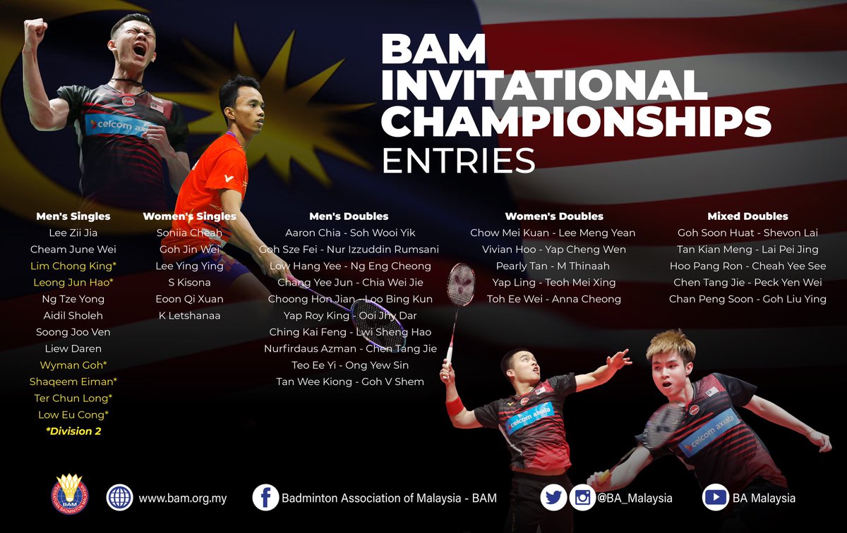Bam On Twitter Official Bam Invitational Championships Kick Off Next Week Div 1 11 16 August Div 2 5 8 August Selected Matches From Both Divisions Will Be Streamed Live Https T Co Cpczmdwrzc Badmintonmalaysia Badmintonlovers Https T