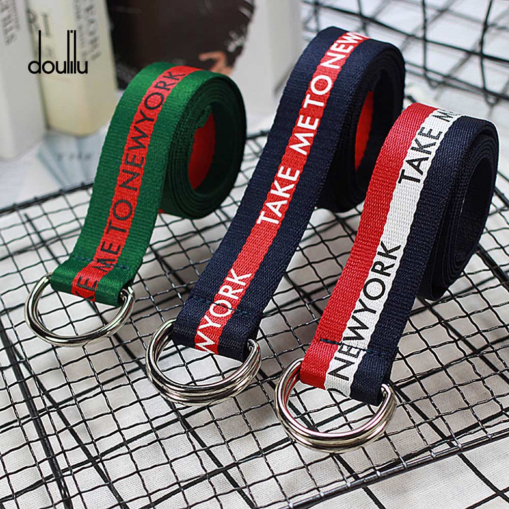 Wannathis Wanita Ikat Pinggang Kanvas Cetak Bahasa Inggris D Fashion Netral Nylon Ring Double Gesper Hitam Wanita Sabuk Wanita Aliexpress