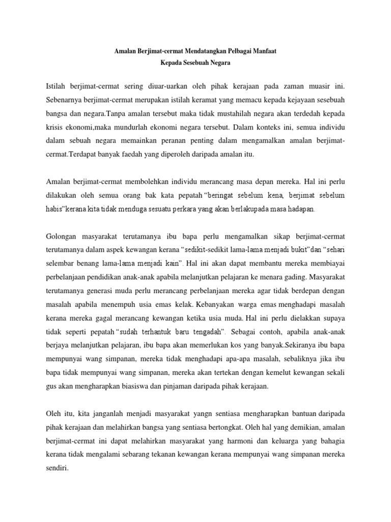 Contoh Karangan Amalan Berjimat Cermat Hallow Keep Arts