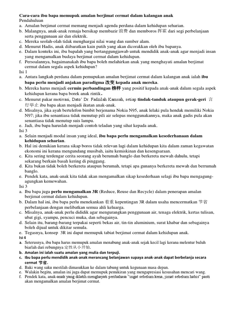Contoh Karangan Amalan Berjimat Cermat Renungan Say
