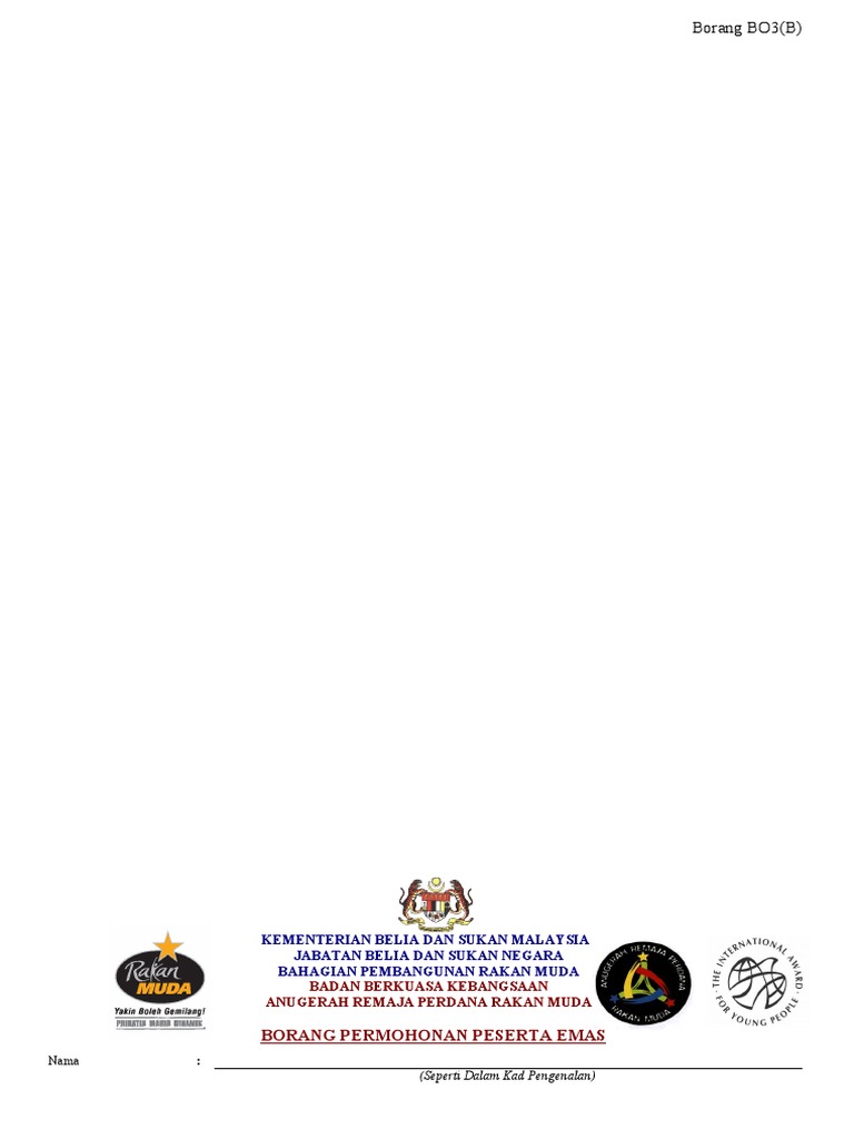 Borang anugerah remaja perdana rakan muda. Tandatangan Nama. 30 Mac 2021 - Majlis Anugerah Remaja Perdana Rakan Muda Tahap Perak dan Gangsa - The Duke of Edinburghs International Awards Pengakap Kelana Siswa Politeknik Tuanku Sultanah Bahiyah PTSB berlangsung pada 30 Mac 2021. Program Anugerah Remaja Perdana Rakan Muda merupakan sebuah program pengiktirafan oleh Kerajaan di atas penglibatan remaja secara aktif dalam bidang-bidang yang menyumbang ke arahproses kematangan meraka.