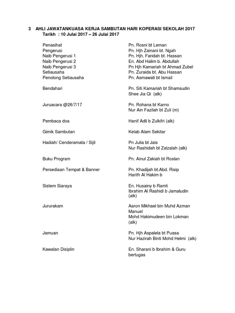 Ahli jawatankuasa koperasi sekolah in english. Di awal penubuhannya pada bulan Julai 1922 jabatan yang dikenali sebagai The Office of The Director of Co-operation ini berfungsi untuk menubuh mendaftar dan membangunkan Syarikat Bekerjasama-sama. Ahli Jawatankuasa In English. Ranimah binti yahya pk koku setiausaha.