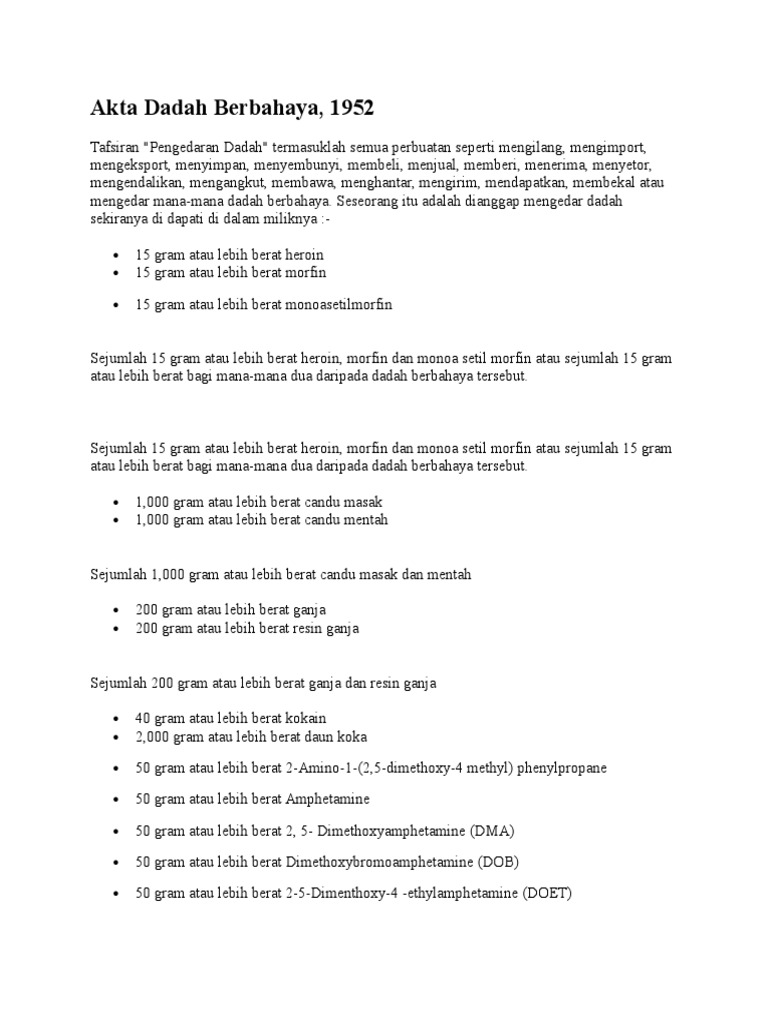 For more information and source see on this link. Seksyen 12 2 Akta Dadah Berbahaya 1952 Seksyen 15 1 A Akta Dadah Berbahaya 1952. In this Act unless the context otherwise requires.